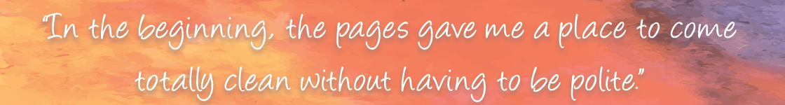 I learned about it first in recovery, and then again from Julia Cameron, author of The Artist’s Way, who advocates for artists to do three pages of handwritten notes every day, or Morning Pages. I love just about everything this woman has written about artists and creative recovery. The pages have become one of my oldest and most valuable rituals. Truthfully, I’m more of an allergic-to-mornings kind of girl, so they sometimes get written in the afternoon or at 3am (technically morning). It still gets the job done.